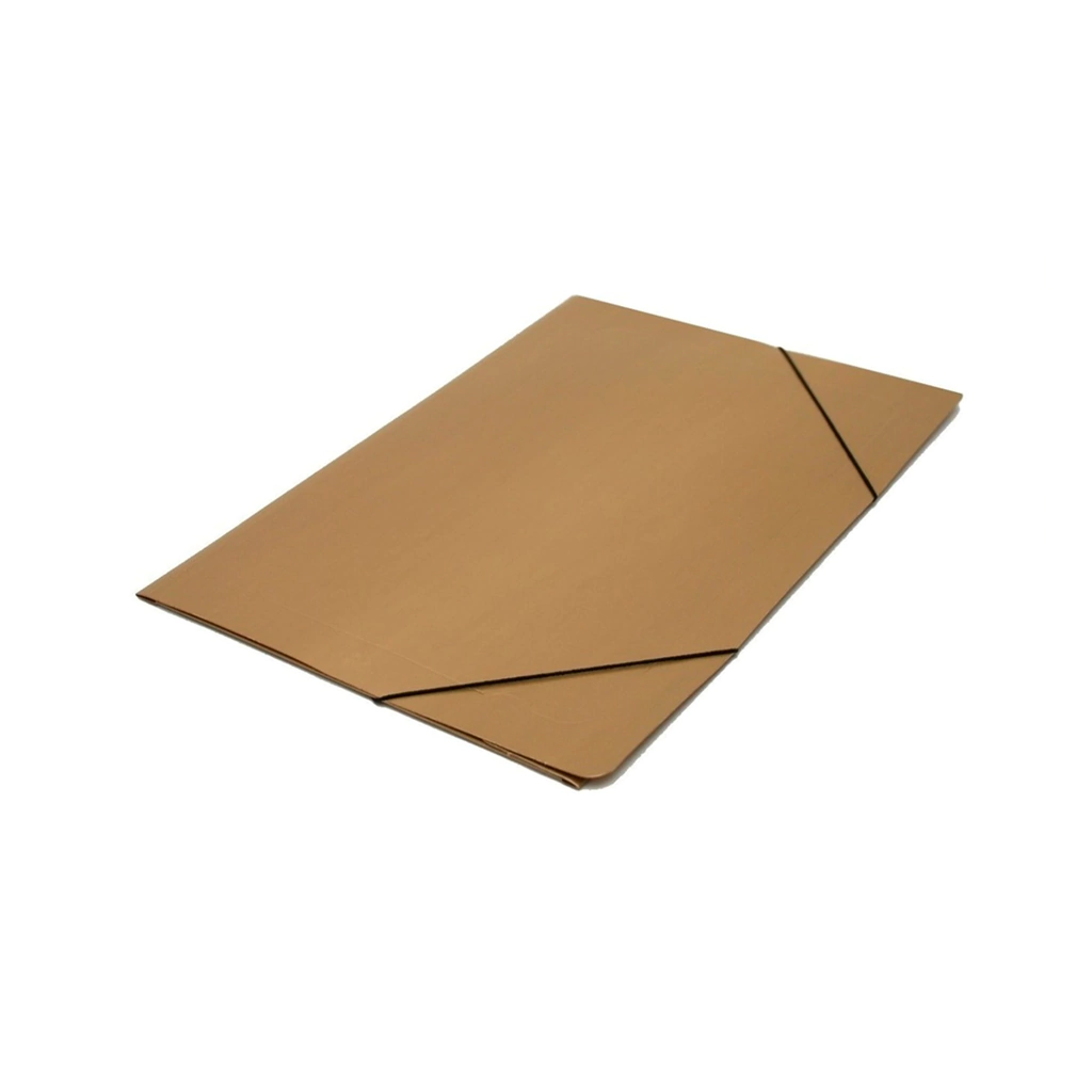 Carpeta disponible en tamaño oficio y A4, con 3 solapas que ayudan a contener las hojas y con un elastico para cerra la carpeta.