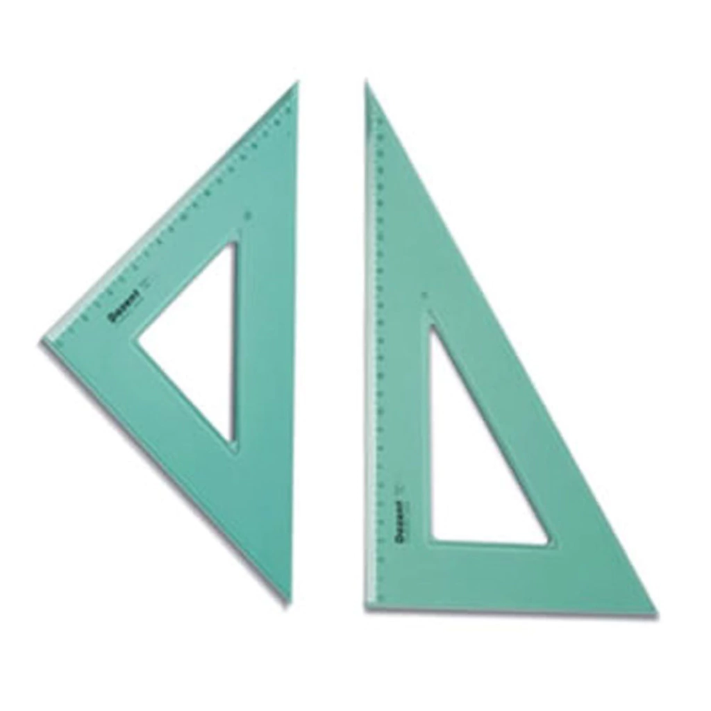 Escuadra acrilica en color celeste transparente, bisel perimetral y uñeros en caladura central bajo normas internacionales.