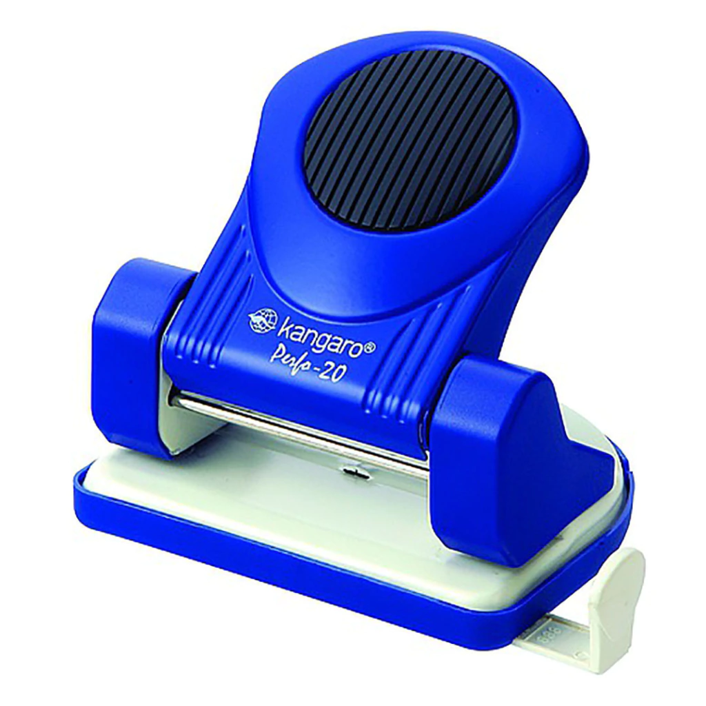 La Perforadora Kangaro 20 Hojas es la herramienta ideal para quienes buscan precisión y eficiencia en sus tareas de oficina, escuela o manualidades. Con capacidad para perforar hasta 20 hojas de papel en una sola pasada, permite realizar perforaciones limpias y uniformes, facilitando la organización de documentos y carpetas.